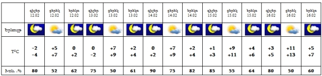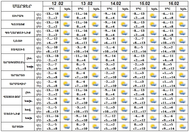 Փետրվարի 12-16-ին սպասվում է առանց տեղումների եղանակ: