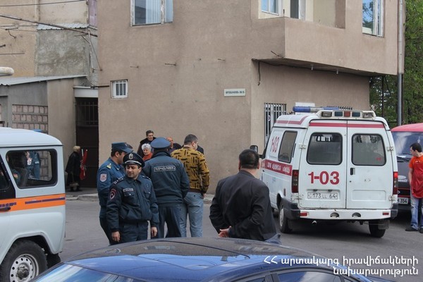 Ապրիլի 22-ին՝ ժամը 09.04-ին, ԱԻՆ–ում տեղեկատվություն էր ստացվել, որ Երևանի Արտաշիսյան փողոցի թիվ 86 շենքի մոտակայքում քաղաքացին ինքնասպանություն է գործել. անհրաժեշտ է օգնություն: