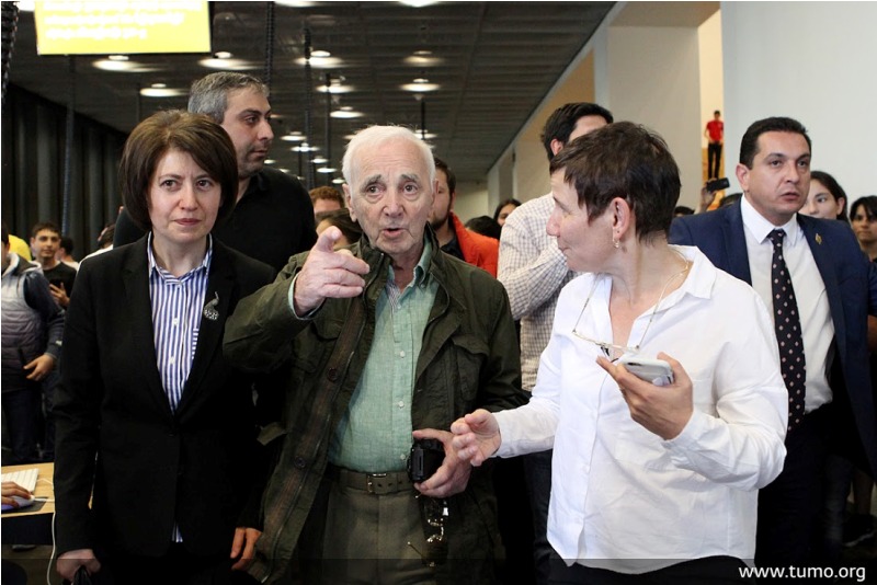 Այսօր Երևանի Թումո այցելեց լեգենդար շանսոնյե Շառլ Ազնավուրը, ով Հայաստանում է գտնվում «Ավրորա» մարդասիրական մրցանակաբաշխության առիթով: Նա շրջեց կենտրոնով, այցելեց նկարչության և երաժշտության դասընթացները, դիտեց ուսանողների աշխատանքներից մի քանիսը և շփվեց թումոցիների հետ: