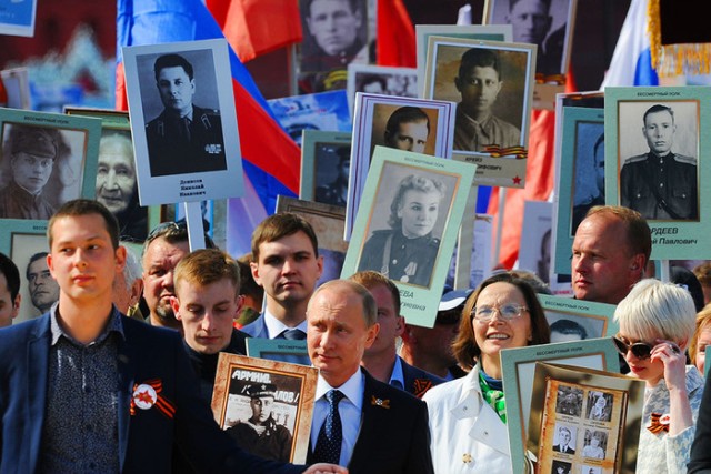 ՌԴ նախագահ Վլադիմիր Պուտինը Մոսկվայի Կարմիր հրապարակում մասնակցել է «Անմահ գունդ» ակցիային իր հոր՝ ճակատային զինվորական Վլադիմիր Սպիրիդոնովիչի լուսանկարով։ Շքերթը մեկնարկել է ՌԴ մայրաքաղաքի Լենինգրադյան պողոտայից՝ Տվերսկի ուղղությամբ։