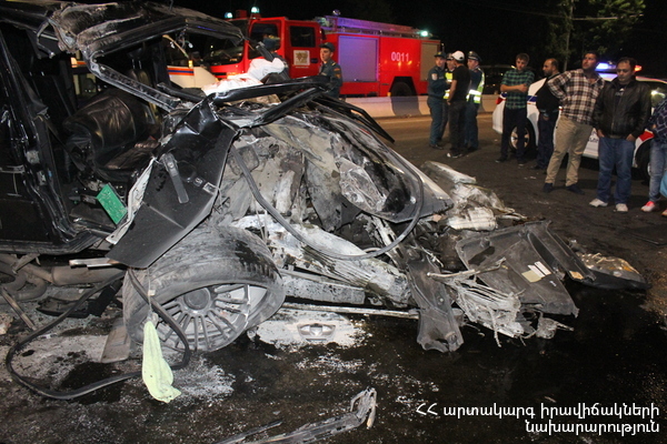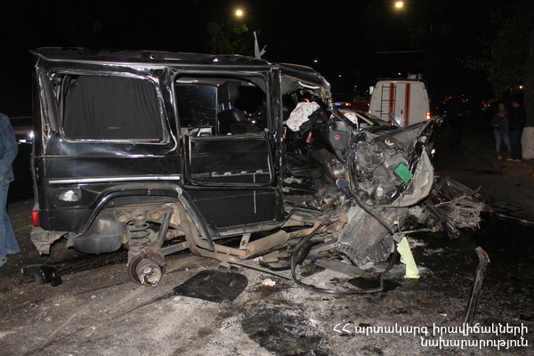 Փրկարարներն ավտոմեքենայից դուրս են բերել «Mercedes G500»-ի վարորդին, ով հոսպիտալացվել է «Աստղիկ» ԲԿ, որտեղ ժամը 01.10-ին մահացել է: Փրկարարներն ավտոմեքենայից դուրս են բերել նաև 1 ուղևորի, ով մահացել է հոսպիտալացման ճանապարհին: Բժիշկները տուժածներ Հ. Խ.-ի և Մ. Բ.-ի առողջական վիճակը գնահատել է ծանր, իսկ Ա. Բ.-ինը՝ բավարար: