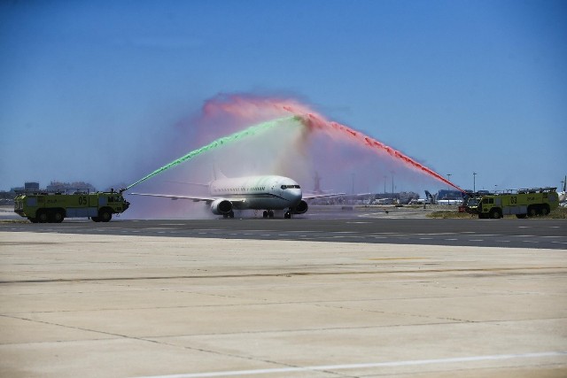 Օդանավի վրա երկրի դրոշի գույներով ներկված ջրի շիթեր են ցողել։