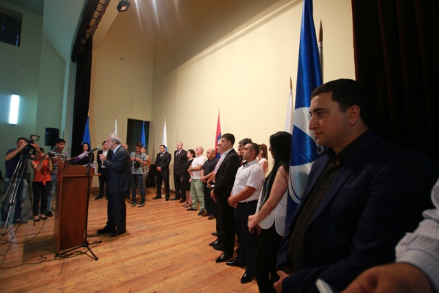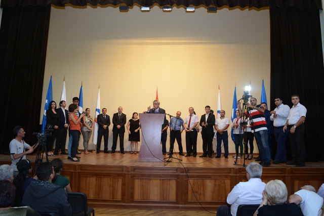 ՀԱՄԱԽՄԲՈՒՄ կուսակցության նախագահ Վարդան Օսկանյանի ելույթը ՏԻՄ ընտրություններին մասնակցելու կապակցությամբ Գյումրիում տեղի ունեցած ժողովի ժամանակ։