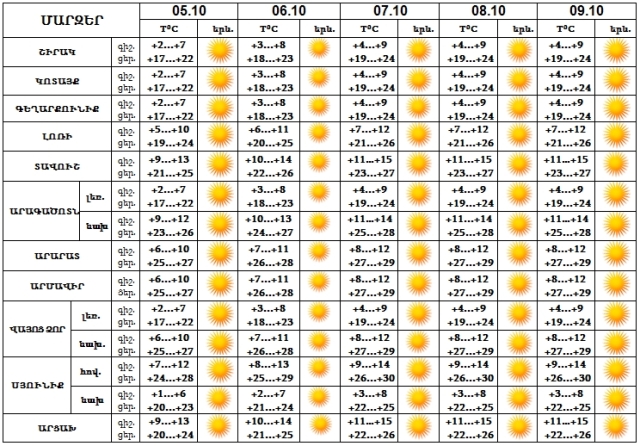 Հոկտեմբերի 5-9-ը սպասվում է առանց տեղումների եղանակ: