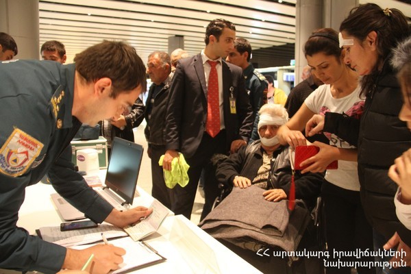ՀՀ ԱԻ նախարար Ա. Երիցյանի կարգադրությամբ` Երևանի «Զվարթնոց» միջազգային օդանավակայանում սահմանվել էր ՀՀ ԱԻՆ ՓԾ ղեկավար կազմի և աշխատակիցների հերթապահություն, ծավալվել էին ԱԻՆ բժշկական, հոգեբանական և տեղեկատվական ծառայությունների արձագանքման կետեր, և ժամանող ՀՀ քաղաքացիներին տեղում ցուցաբերվում էր համապատասխան օգնություն: