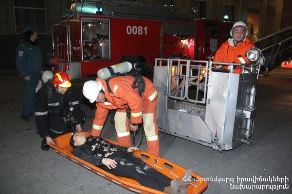 Պայմանական դեպքի վայրում էին նաև շտապօգնության և ոստիկանության աշխատակիցները: Ցուցադրելով իրենց մասնագիտական hմտությունները` փրկարարներն ավտոսանդուղքի և պարանների միջոցով 5-րդ հարկի պատշգամբից դուրս բերեցին տուժածներին և մոտեցրին շտապօգնության բրիգադին: