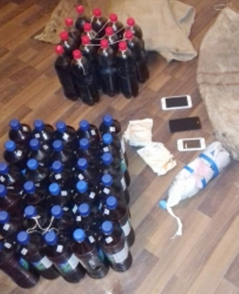 Կատարվել է տեղանքի զննություն, ինչի արդյունքում հայտնաբերվել են պարկեր, որոնց մեջ եղել են 59,1 գրամ ընդհանուր քաշով կանաչավուն կանեփանման զանգված, «B 8» գրառմամբ չորս դեղահաբ, 30 շիշ բժշկական սպիրտ, 14 շիշ կոնյակ` ընդհանուրը 14 լիտր տարողությամբ, 4 բջջային հեռախոս, 1 Wi-Fi սարք և 2 տուփ խմորիչ:
