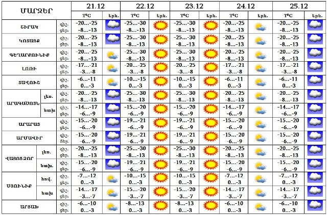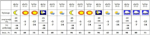 Դեկտեմբերի 21-25-ը սպասվում է առանց տեղումների եղանակ:
