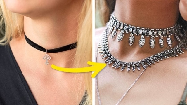 Չոկերների փոխարեն մի քանի վզնոցից բաղկացած զարդեր