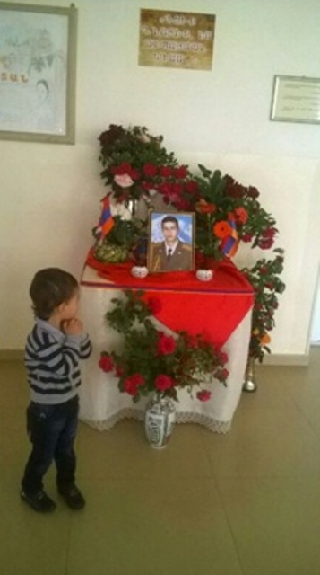 Այս տարի նրանք իրենց հայրիկի համար ծաղիկներ են բերել հուշարձան: Գեղամն ու Էրիկը հայրիկին շա՜տ են կարոտել և դեռ սպասում են, չնայաց գիտեն, որ հայրիկը հերոսացել է իր սխրանքով, գիտեն, որ իրենք հերոսի զավակներ են. ապրիլյան պատերազմում քաջաբար կռված ու իր կյանքը հայրենիքին նվիրած հերոսի: