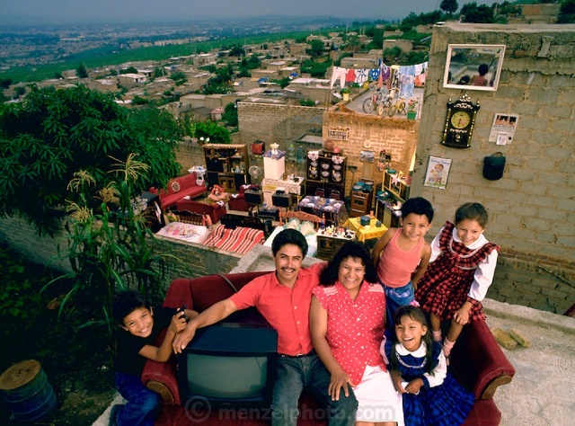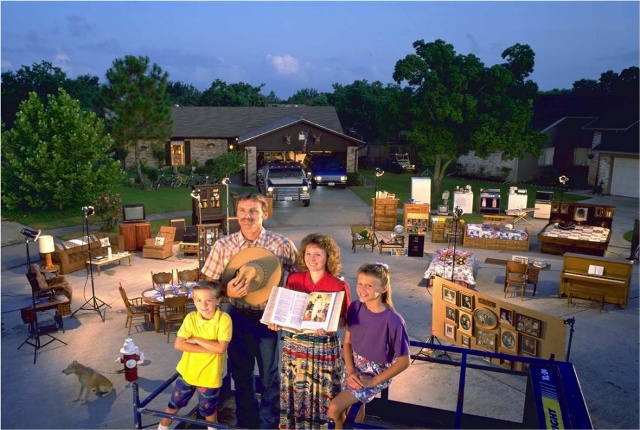 Հայտնի լուսանկարիչ Փիթեր Մենզելը, ով ուսումանսիրում է աշխարհով մեկ սփռված մարդկանց կյանքը, 90–ականների սկզբներին աշխատել է «Նյութական աշխարհ. գլոբալ ընտանեկան դիմանկար» ֆոտոնախագծի վրա։ Նա ճամփորդել է աշխարհի 30 երկրով, որոնել է միջին պայմաններով ապրող ընտանիքներ՝ ըստ տան չափերի, եկամուտների և կազմի, ու խնդրել տնից դուրս հանել այն ամենը, ինչը պատկանում է ընտանիքին, և պատմել, թե որն է նրանց համար ամենաթանկարժեքը։
