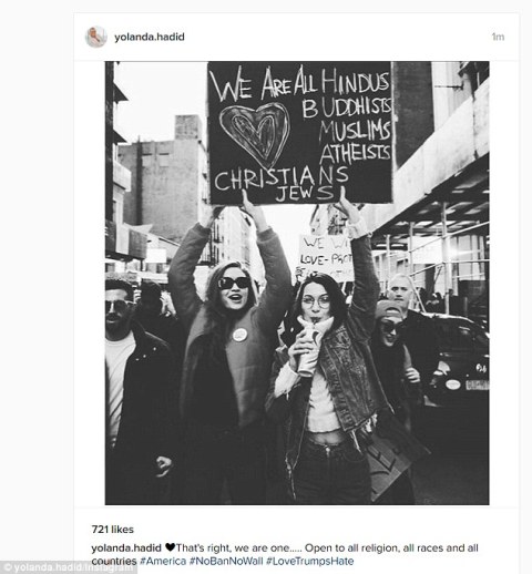 Հայտնի Բելլա և Ջիջի Հադիդ քույրերը միացել են Նյու Յորքում տեղի ունեցող ցույցերին, որոնք անցկացվում են ԱՄՆ նախագահ Դոնալդ Թրամփի՝ փախստականների մուտքը սահմանափակող նոր հրամանի դեմ։ Այս մասին հայտնում է «The Daily Mail»–ը։
