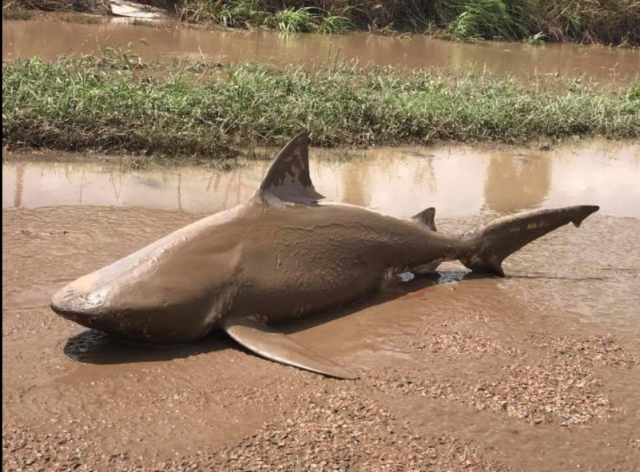 Ավստրալիայի Քվինսլենդ նահանգում մարտի 28–ի փոթորկից հետո հանգիստն այդքան էլ հանգիստ չի եղել։ Ջրերով ողողված ճանապարհներին շնաձուկ է հայտնաբերվել, որը դուրս է նետվել ջրերից։ Այս մասին հայտնում է «abcnews.go.com»–ը։