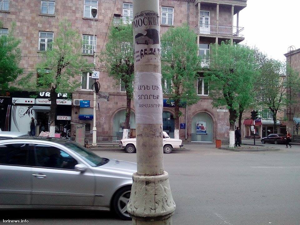 Գրությունը փակցված է Վանաձորի Տիգրան Մեծ պողոտայի վրա: Մայթեզրի գազոններն ու ծաղիկները մարդիկ տրորում են: