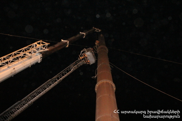 Ժամը 02:30-ին փրկարարները ծխատարն անվտանգ իջեցրել են (ապամոնտաժել):