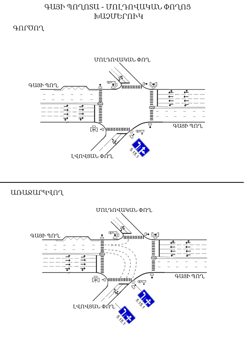 Երթևեկության կազմակերպման բարելավման նպատակով Երևան քաղաքի Գայի պողոտա-Մոլդովական փողոց-Լվովյան փողոց խաչմերուկում 2019 թվականի մայիսի 1-ից կկատարվի երթևեկության կազմակերպման փոփոխություն: