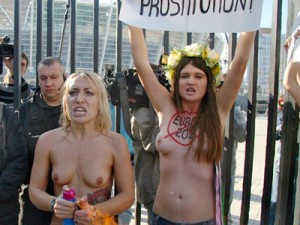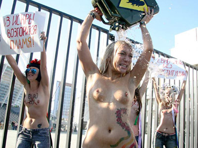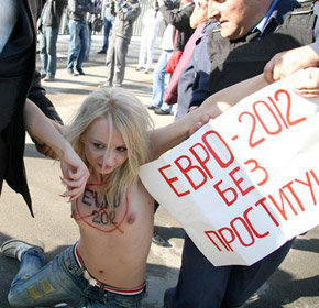 «Օլիմպիյսկի» մարզական համալիրի դիմաց «ՄԵՄԵՆ»–ի աղջիկները մերկացել են՝ «Եվրո-2012-ը՝ առանց մարմնավաճառության» կարգախոսի ներքո։ Բողոքող մերկ ակտիվիստներից 4–ին կալանավորել են։ «ՖԵՄԵՆ»-ի հայտարարության մեջ ասվում է, որ եվրոպացի աշխատավորը «ֆուտբոլ-գարեջուր-սեքս» բանաձևից հեռու չի գնում, իսկ Եվրո-2012-ը Ուկրաինայում անցկացնելու իրավունքի համար ուկրաինացիները ստիպված են Պլատինիի «կենդանիների» հոշոտման համար մատուցել իրենց փոքրաթիվ «հարստությունները», այդ թվում՝ կանանց։