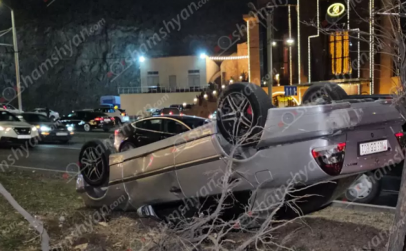 Mercedes-ը «Բելաջիո» ռեստորանի մոտ բախվել է բազալտե եզրաքարերին, կոտրել ծառն ու գլխիվայր շրջվել