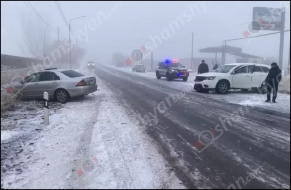 Կոտայքում մերկասառույցի պատճառով բախվել են «Mercedes»-ն ու «Dodge»-ը, հետո էլ «Kia Sorento»-ն բախվել է «Dodge»-ին․ կա վիրավոր