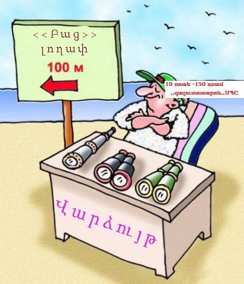 Tsovinar Sulle. «Երևանի քաղաքապետը հաշվի առնելով երևանցիների ծանր սոցիալական վիճակը՝ որոշել է անել առավելագույնը, նրանց ծովափնյա հանգիստը հենց Երևանի կենտրոնում կազմակերպելու համար: Բոլոր ցանկացողները կարող են իրենց ճամպրուկներով մոտենալ Երևանի քաղաքապետարանի մուտքի մոտ: Ամբողջ օրը Ձեր երեխաներին կհսկեն ոստիկանները, իսկ ամուրիններին մութ գիշերները այցի կգան Երևանի լավագույն սեռական հստակ կողմնորոշում ունեցող «ծտերը»...:)))))))))))»։