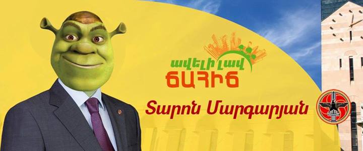 Argishti Kiviryan. «Գորտերի համաշխարհային ասոցացիան հայտնում է իր շնորհակալությունը Տարոն Մարգարյանին՝ Երևանի քաղաքապետարանի դեմը ճահիճ սարքելու համար...»։