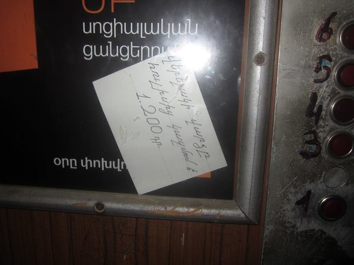 «Հուլիս ամսից վերելակի գումարը 1 բնակարանի հաշվով 1000 դրամից բարձրացավ 1200 դրամի» (ֆոտո)