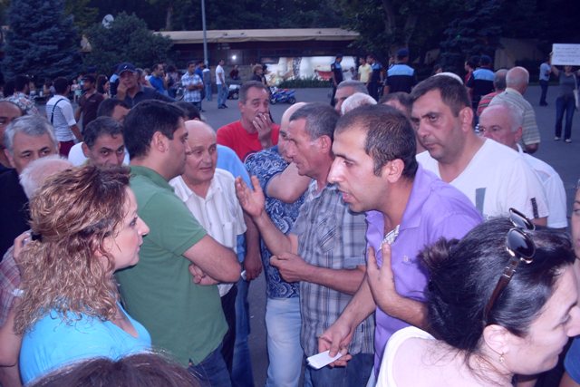 Այսօր երեկոյան Ազատության հրապարակում «Ո՛չ թալանին» նախաձեռնության անդամների մի մասի կողմից անցկացվող ցույցի ժամանակ քաղաքացիները խումբ–խումբ կանգնել և քննարկում էին Բաղրամյանպողոտայից հեռանալու որոշման ճիշտ կամ սխալ լինելը։