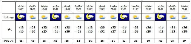 Օդի ջերմաստիճանը 18-ին կնվազի 2-3, արևելյան շրջաններում` 4-6 աստիճանով, 20-21-ին կբարձրանա 2-3, արևելյան շրջաններում` 7-9 աստիճանով: