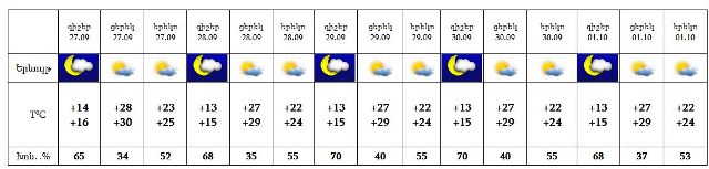 Օդի ջերմաստիճանը 27-28-ին կնվազի 1-2 աստիճանով: