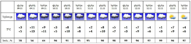 Նոյեմբերի 9-11-ին ժամանակ առ ժամանակ հնարավոր է անձրև: