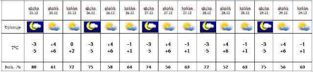 Դեկտեմբերի 25-29-ին սպասվում է առանց տեղումների եղանակ: