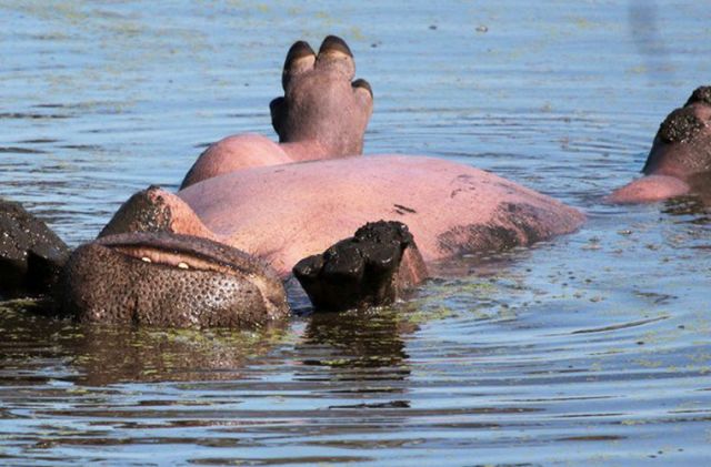 В ЮАР заметили загорающего на спине бегемота (фото)