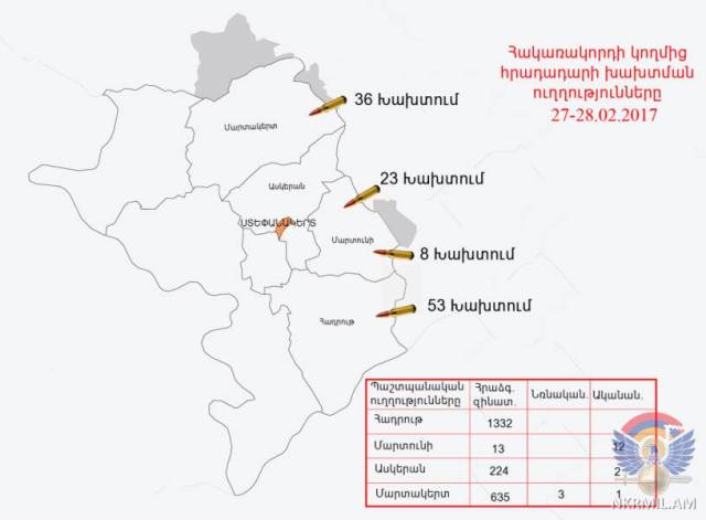 27 февраля и в ночь на 28 февраля по всей протяженности арцахско-азербайджанской линии соприкосновения войск противник нарушил режим прекращения огня более 120 раз, сообщает пресс-служба Минобороны Республики Арцах.