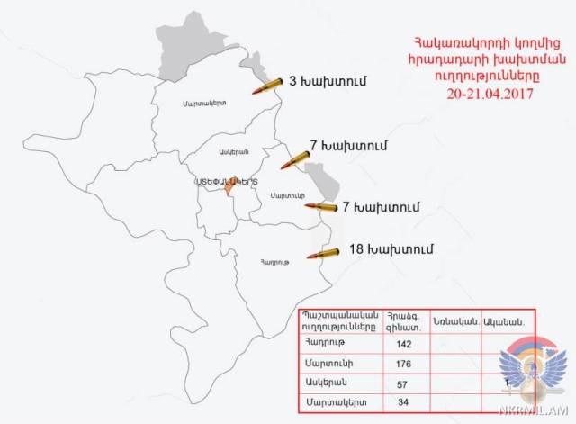 ВС Азербайджана произвели по армянским позициям свыше 400 выстрелов (инфографика)